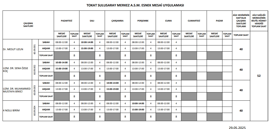 Çalışma Saatlerimiz